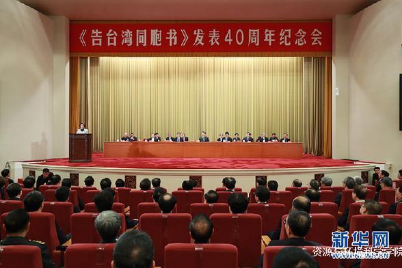 今天,我们在这里隆重集会,纪念全国人民代表大会常务委员会《告台湾同胞书》发表40周年。值此新年之际,我代表祖国大陆人民,向广大台湾同胞致以诚挚的问候和衷心的祝福!